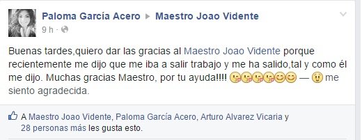 «Buenas tardes Maestro. Estoy muy agradecida con usted , ya que en una rueda de la oración le pedí por unos amigos para que se enamoraran y volvieran a trabajar juntos y así ha sido. Le estoy inmensamente agradecida. Que dios me lo bendiga Maestro» Susana Férnandez. Consulta sobre el amor. Tarot amor gratis. La rueda de la oración es una de las mejores maneras para pedir por cosas que te preocupan o problemas que quieres resolver. Con el método de Mestro Joao , la mejor predicción y las respuestas exactas aseguradas. Consejos y revelaciones en la rueda de la oración. tarot amor