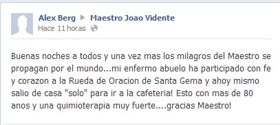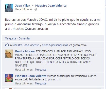 una vez más me llena de alegría seguir publicando los testimonios de los que ya sois cientos de personas que podéis DECIR: EL MAESTRO JOAO ME HA AYUDADO Y SE HA OBRADO EL MILAGRO.