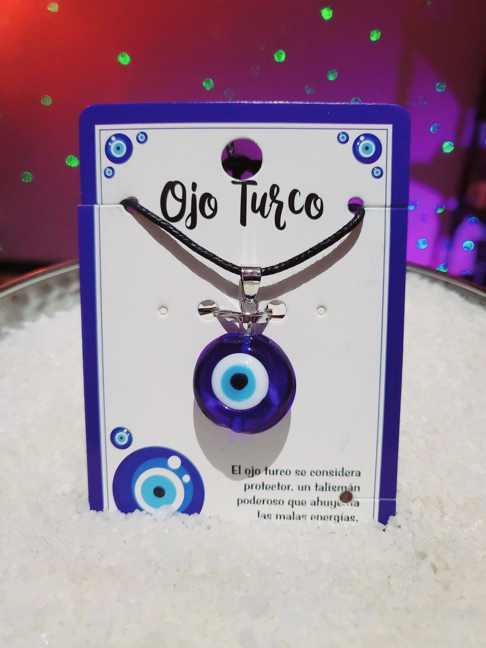 El ojo turco se conoce, también, con el nombre de «nazar» y se trata de un amuleto protector que se presenta en forma de una gota plana cuyo interior contiene la forma de un ojo. Este abalorio se suele usar para protegerse de las malas energías así como del mal de ojo.