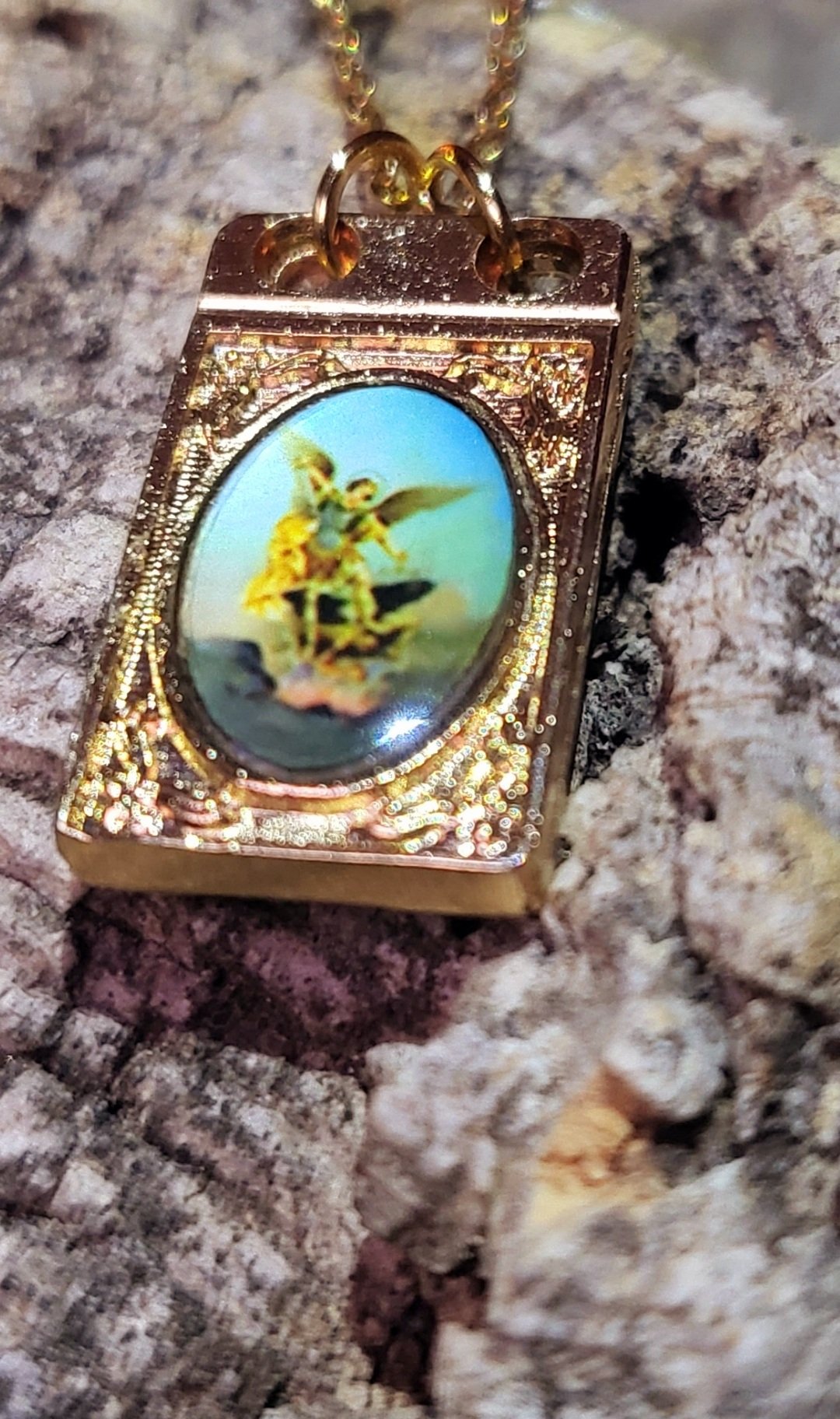 Incluye cadena chapada en oro.