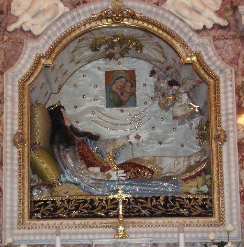 Las reliquias de la Santa se expusieron en la Iglesia de Nuestra Señora de la Gracia, quedando adornados con una imagen al estilo napolitano realizada por una señora de la nobleza que sanó de una grave enfermedad durante la breve estancia de las reliquias en su casa, durante un descanso del viaje a Mugnano.