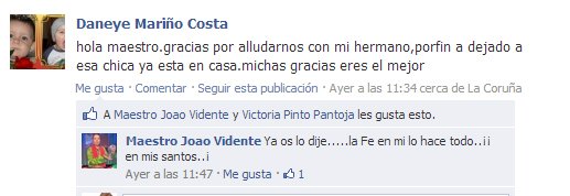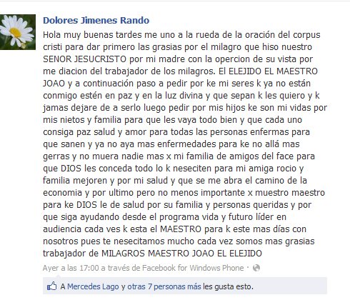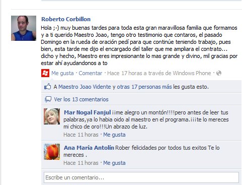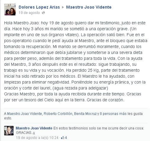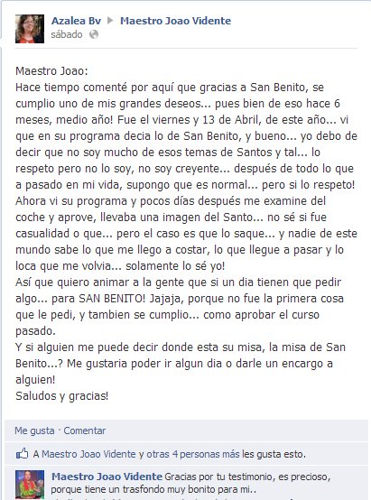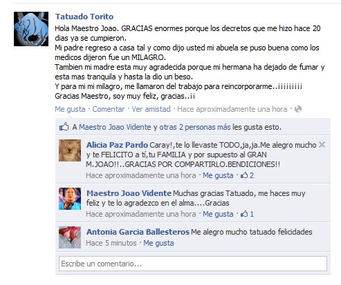 Os espero en Facebook: http://www.facebook.com/maestrojoaovidente y en Twitter http://www.twitter.com/maestro_joao con vuestros testimonios, que son MI RAZÓN DE SER…